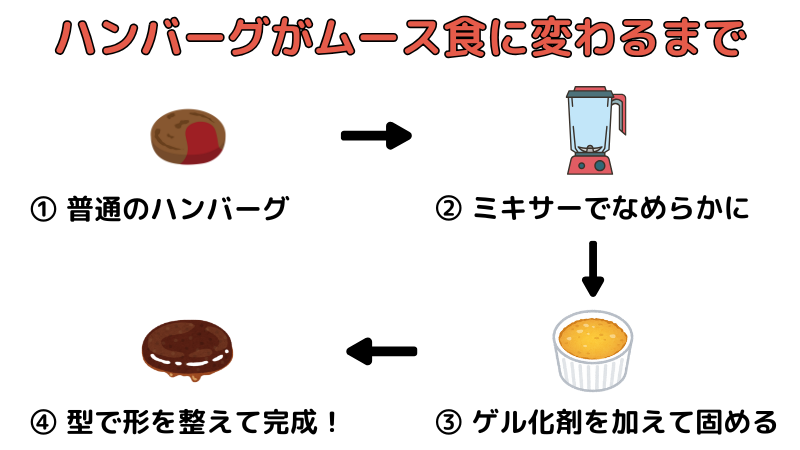 ムース食は、食材をなめらかにしてゼリーのように固めることで、するっと飲み込めるように作られています。
