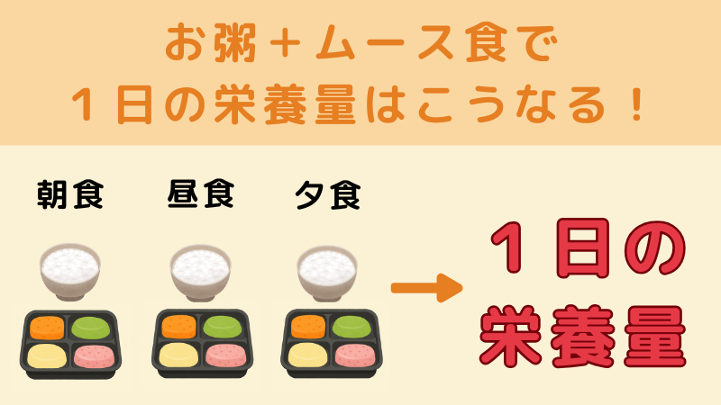 朝・昼・夕にムース食のお弁当とお粥を食べた時の1日の栄養量は?