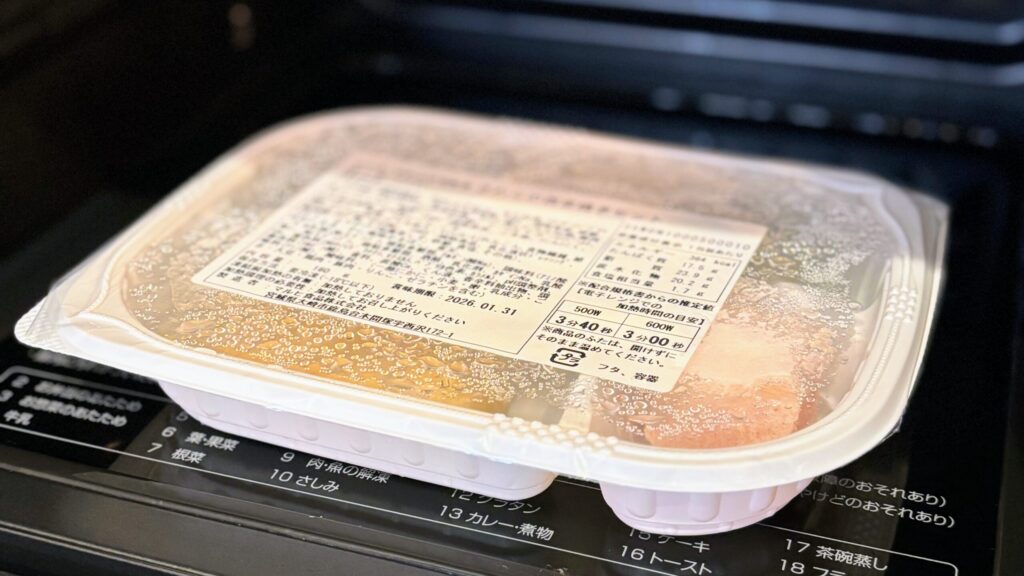 フタは外さずに、そのまま電子レンジで温めるだけです。
