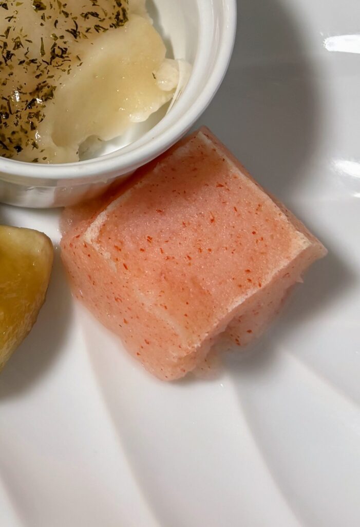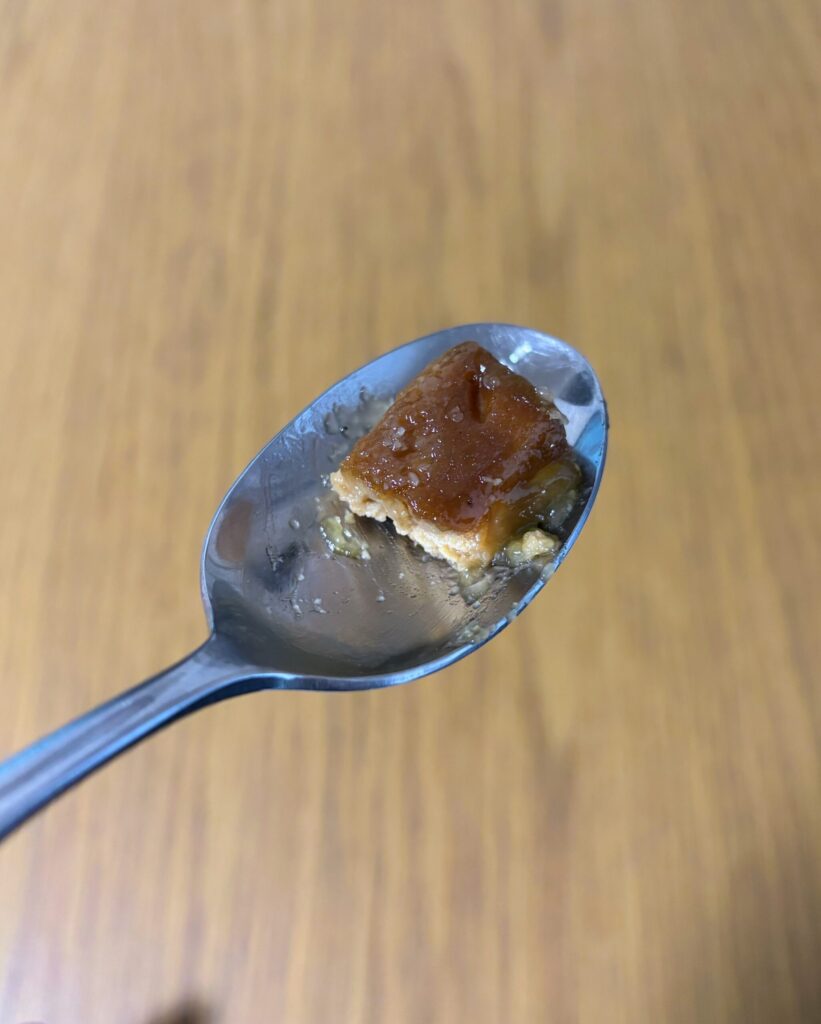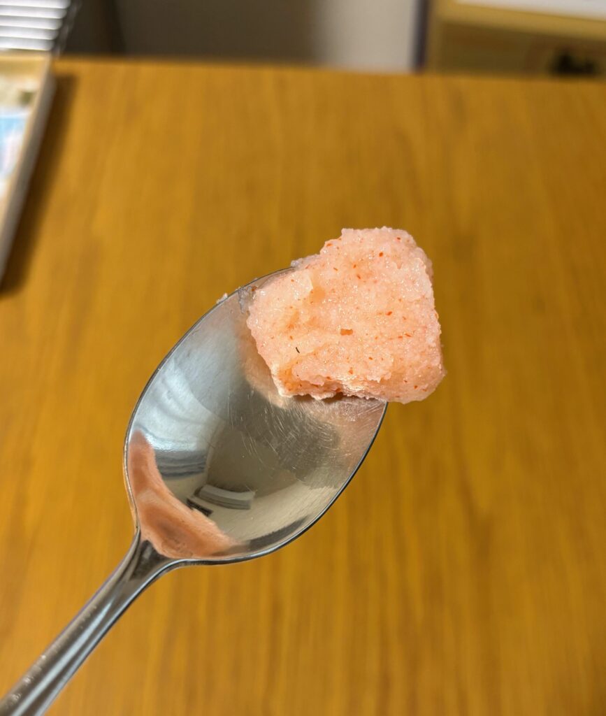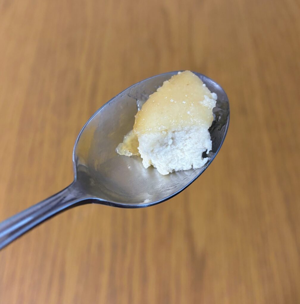 力を入れなくてもスプーンですっとすくえ、歯茎でつぶれる柔らかさです。